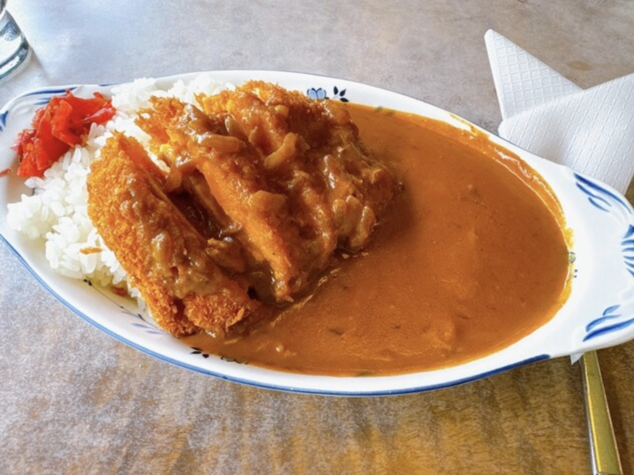 名物のカツカレーは、スパイシーなルーとサクサクのトンカツが特徴で、リーズナブルな価格の割にボリュームが満点なので、地元の人から愛されています。