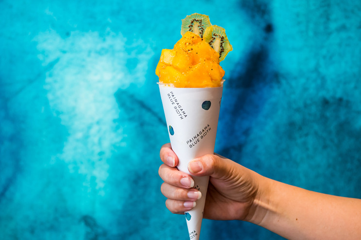 宮古島のパイナガマビーチ目の前に位置する「PAINAGAMA BLUE BOOTH(パイナガマ ブルー ブース)」は、地産地消をテーマにしたホットドッグ「宮古ドッグ」や、島素材を贅沢に使ったソフトクリーム「ちゃんぷるSOFT」など、個性的なメニューが揃うカフェです。