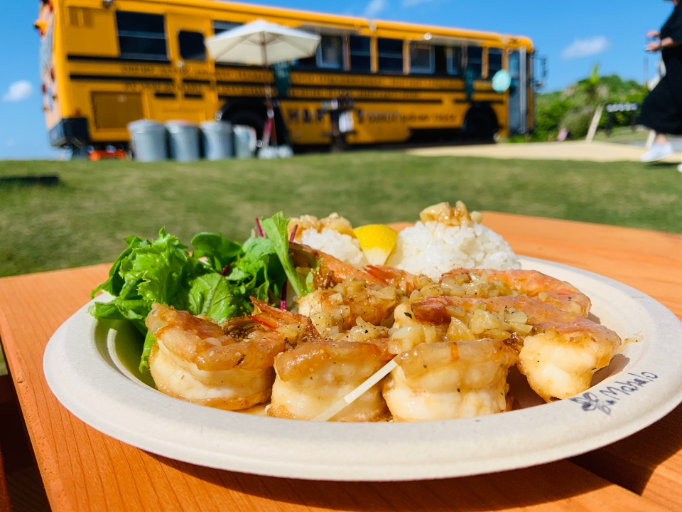 宮古島の泡盛や塩、こだわりのハーブで仕込んだエビを、ガーリックとハワイアンソースでフライ&グリルした一皿が特徴で、プレーン、スパイシーホット、バターガーリック、スペシャルの4種類の味が楽しめます。
