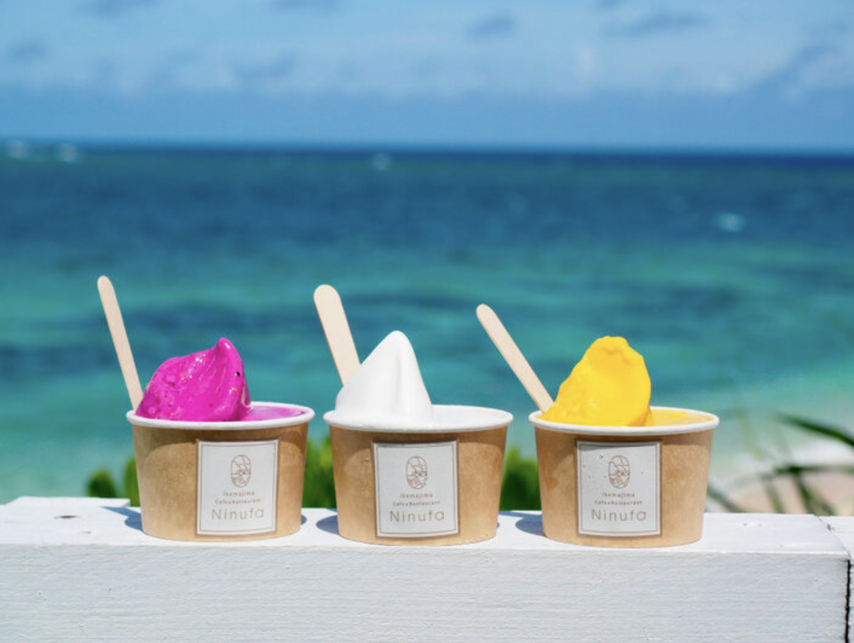 池間島に位置する「Ikemajima gelato cafe Ninufa」は、全席がオーシャンビューのテラス席となっており、美しい絶景が魅力のカフェです。