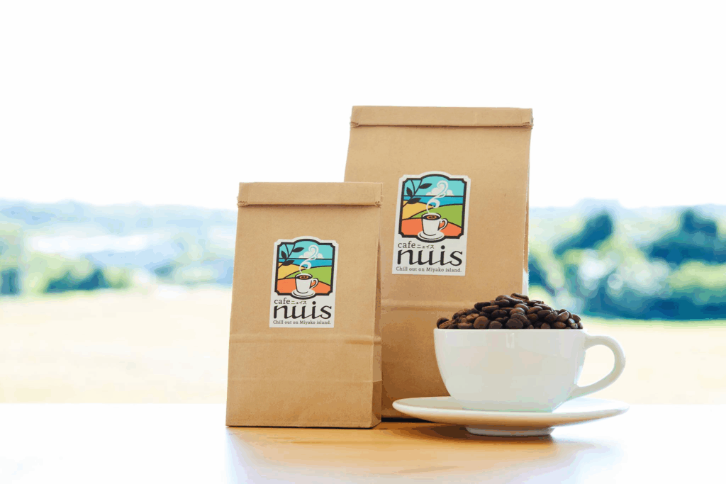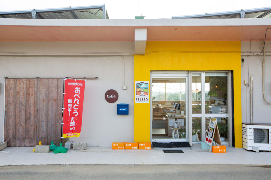 café nuis(カフェ ニュイス)は、宮古島・城辺に位置する自家焙煎カフェで、大きな窓越しに牧草地と広い空を望むロケーションが魅力です。