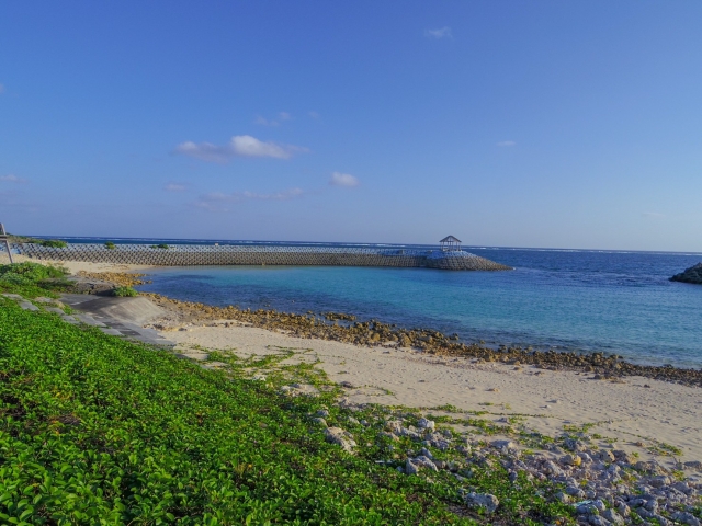 「わいわいビーチ」は、宮古島の人工ビーチで、地元カップルや子連れファミリーにも親しまれているスポットです。