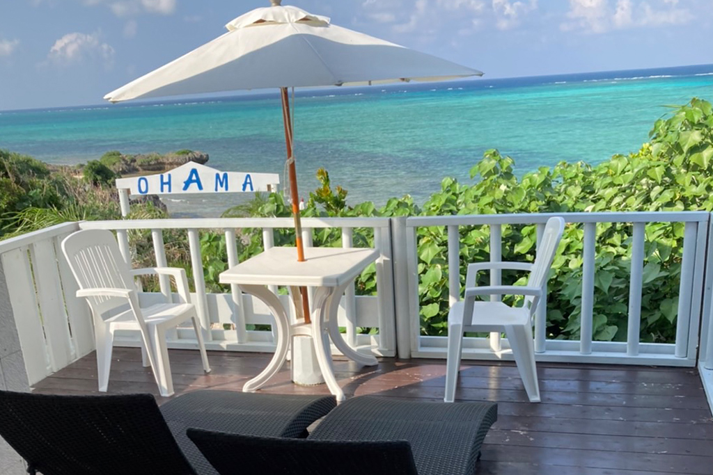 OHAMA Terrace is a breathtaking open-air café perched on the eastern coast of Ikema Island, offering panoramic views and fresh ocean breezes from every seat.