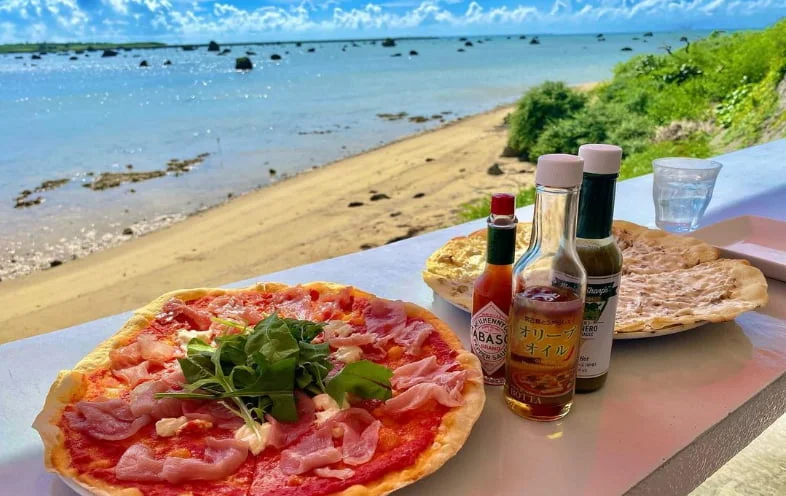 Located on Irabu Island—just a short drive across the bridge from Miyako—BOTTA is a standalone pizza café known for its thin, Roman-style pizzas baked in a traditional stone oven.