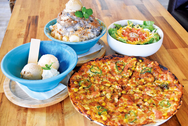 Other popular menu items include the brown sugar café latte made with homemade Okinawan syrup, coffee jelly, freshly made waffles, and traditional Okinawan zenzai (sweet red bean soup with shaved ice).