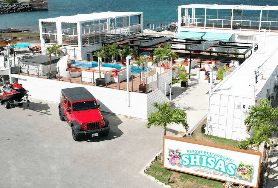 SHISA’S cafe & BBQ is a container-style resort café and barbecue restaurant where every seat offers a stunning ocean view.