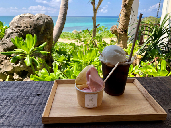 ILocated on Ikema Island just across the Ikema Bridge from Miyako’s main island, Kemajima Gelato Café Ninufa is a specialty gelato café known for its scenic ocean-view terrace.